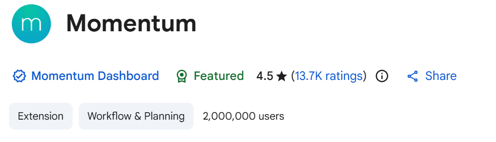 Momentum transforms the new tab page into a calm, focused space. Instead of distractions, you see a daily focus, inspiring image, and a simple to-do list.