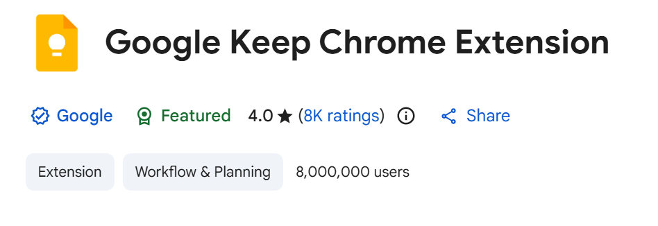 Google Keep’s Chrome extension makes note-taking instant. You can save text, links, images, and ideas with a single click.